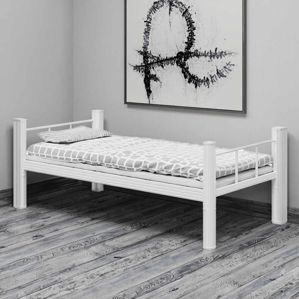 간단한 아파트 침실, 싱글 침대, 두꺼운 새로운 기술 파이프, 학생 기숙사 침대, 단일 계층 철 프레임 침대