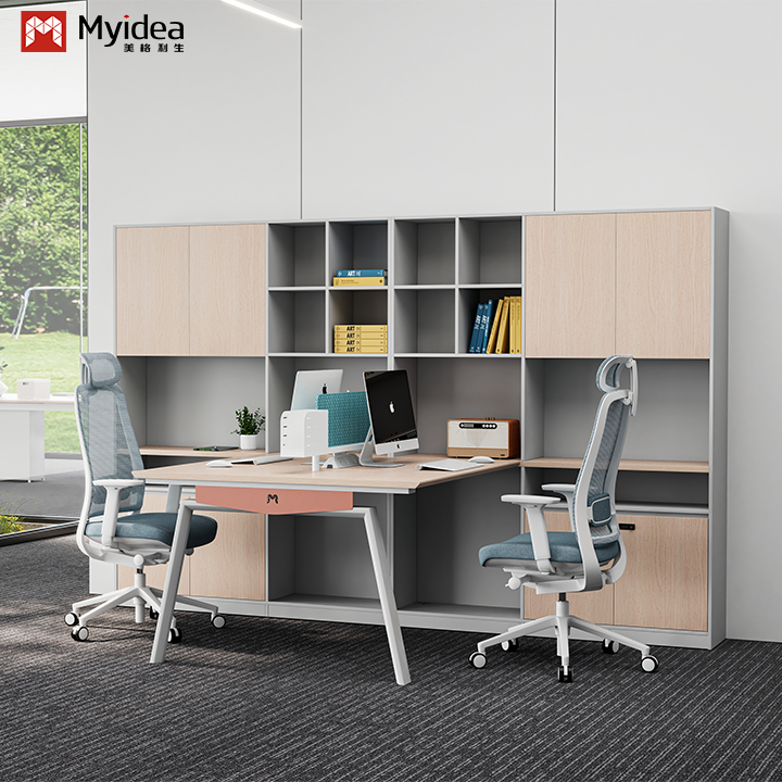 현대 친환경 목재 직원 책상 천 스크린 철기 다리 큰 저장 캐비닛 독립 사무실 가구